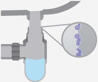 Perazijnzuur (peracetic acid) biedt een unieke oplossing voor dit probleem14: het is universeel actief tegen de betrokken micro-organismen en breekt de biofilm in de leidingen af zodat de bacteriële broeihaarden geëlimineerd worden en het reservoir voor deze MDRO-epidemieën volledig verdwijnt. Daarenboven is perazijnzuur onschadelijk voor de leidingen, voor het milieu en voor de gebruiker.