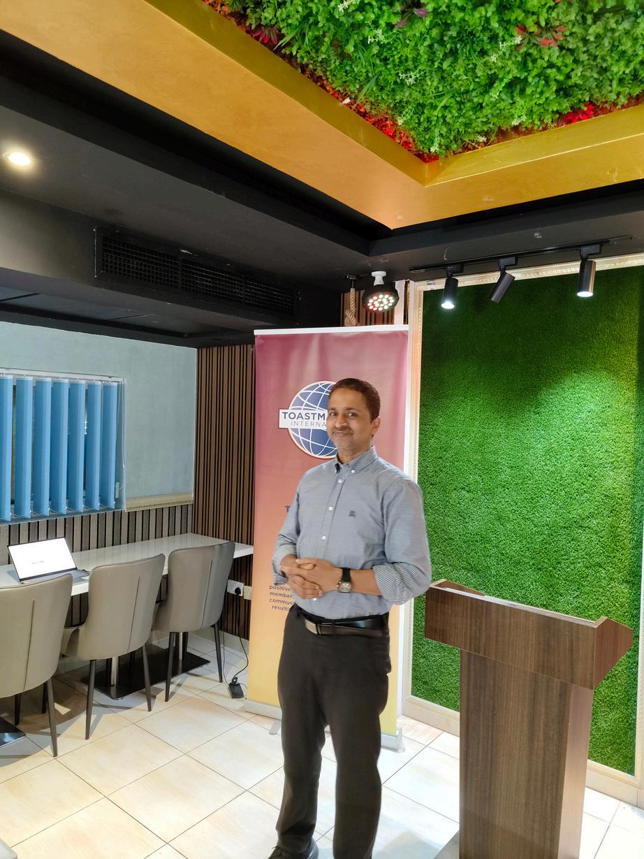 DTMSaravananRajalouisachartered Engineer,workingasDirectoratan internationalengineeringconsultancy. HehasbeenaToastmasterforthepast6 yearsandisamemberofAbuDhabi Toastmastersclub