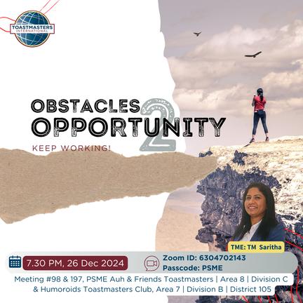 MyWhatsAppstatusreads,“Dotherightthing evenwhennooneislooking Itiscalled integrity.”However,itlooksmorelikeadictum whichallHumoroidiansfollow,evenmorethan me Beenamemberfor22years,servedasa ClubPresidentandAreaGovernorinthepast, buthavenevercomeacrosssuchatalented, dedicated,enthusiasticgroupofclub members,especiallythenewjoiners.They havebeencomingaheadandtakingupallthe rolesandhelpingtheclubatalltimes Lately,ourClubpresenceisfeltonsocial mediathankstoTMRohini. DearToastmasters,allowmetosharewhatI readinRobinSharma’sbook,TheGreatness Guide;“Eachday,lifewillsendyoulittle windowsofopportunity.Yourdestinywill ultimatelybedefinedbyhowyourespondto thesewindowsofopportunity”.Thewayour membersarerespondingtotheopportunities theyget,Iamconfidenttheywilltakeourclub tonewheightsneverachievedinthepast