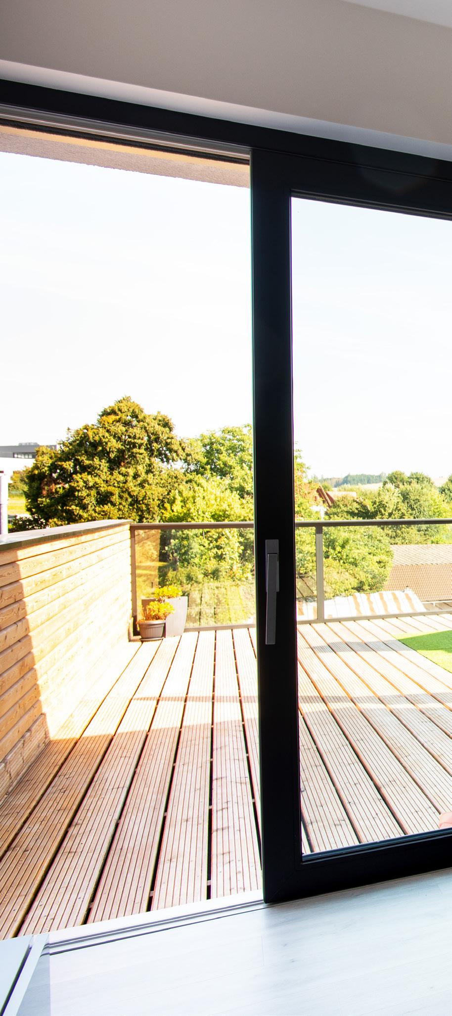 neboli HS portály jsou v současné době velmi populární. Kdo dnes staví, obvykle s tímto systémem počítá. Není divu. Kromě vysokého užitného komfortu a propojení interiéru se zahradou přináší HS portál také více světla do místnosti. Ovládání je jednoduché pro všechny členy rodiny i v případě velkých rozměrů. HS portál SYNEGO je opět vyroben z osvědčeného plastu RAU-PVC, stavební hloubku křídla má 80 mm a rámu 190 mm . Hodnota tepelného prostupurámu Uf = 1,3 W/m 2K a standardní tepelné izolace trojskla Ug = 0,6 W/m 2 K tvoří tepelnou izolaci celého prvku Uw = 0,84 W/m 2 K . Maximální rozměr posuvného křídla v bílém provedení může být až 3000 x 2600 mm (š x v), třída bezpečnosti až RC 2 a hlukový útlum Rw až 43 dB.