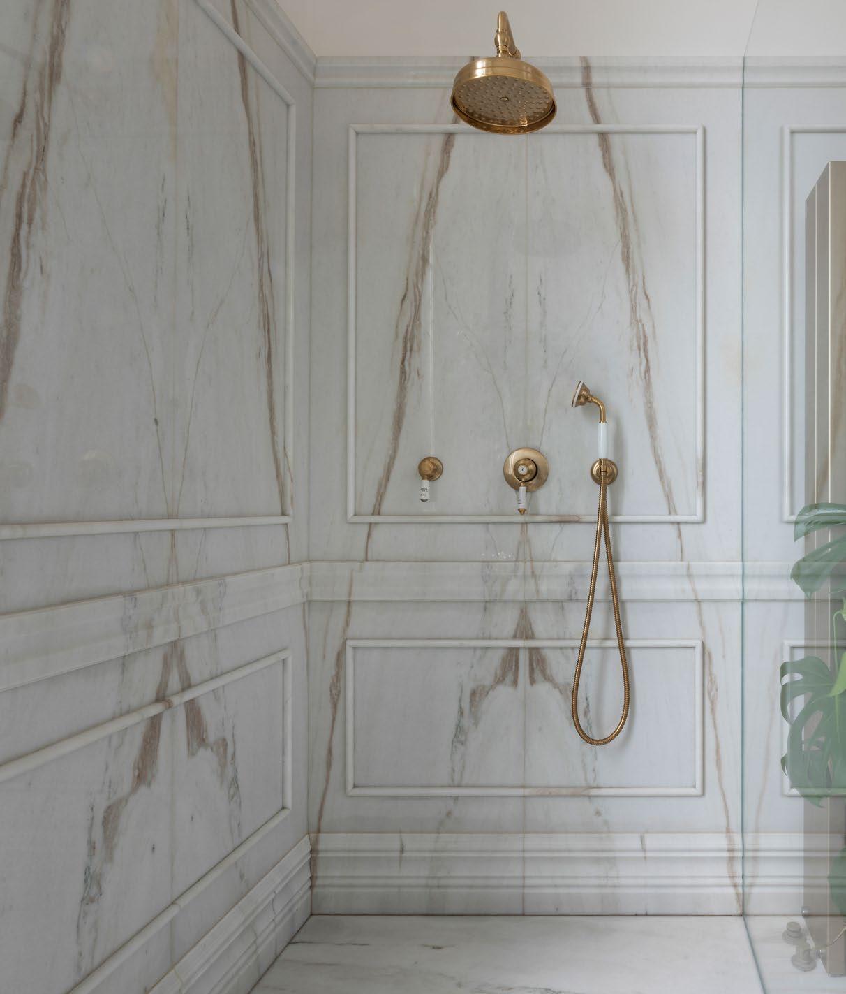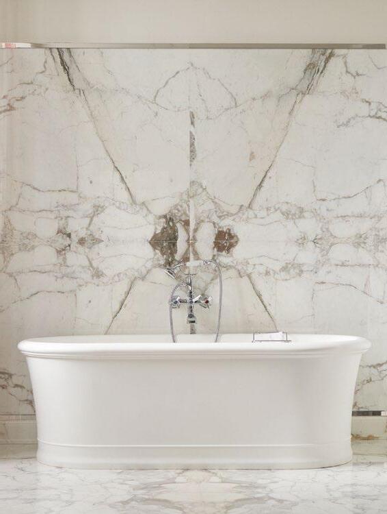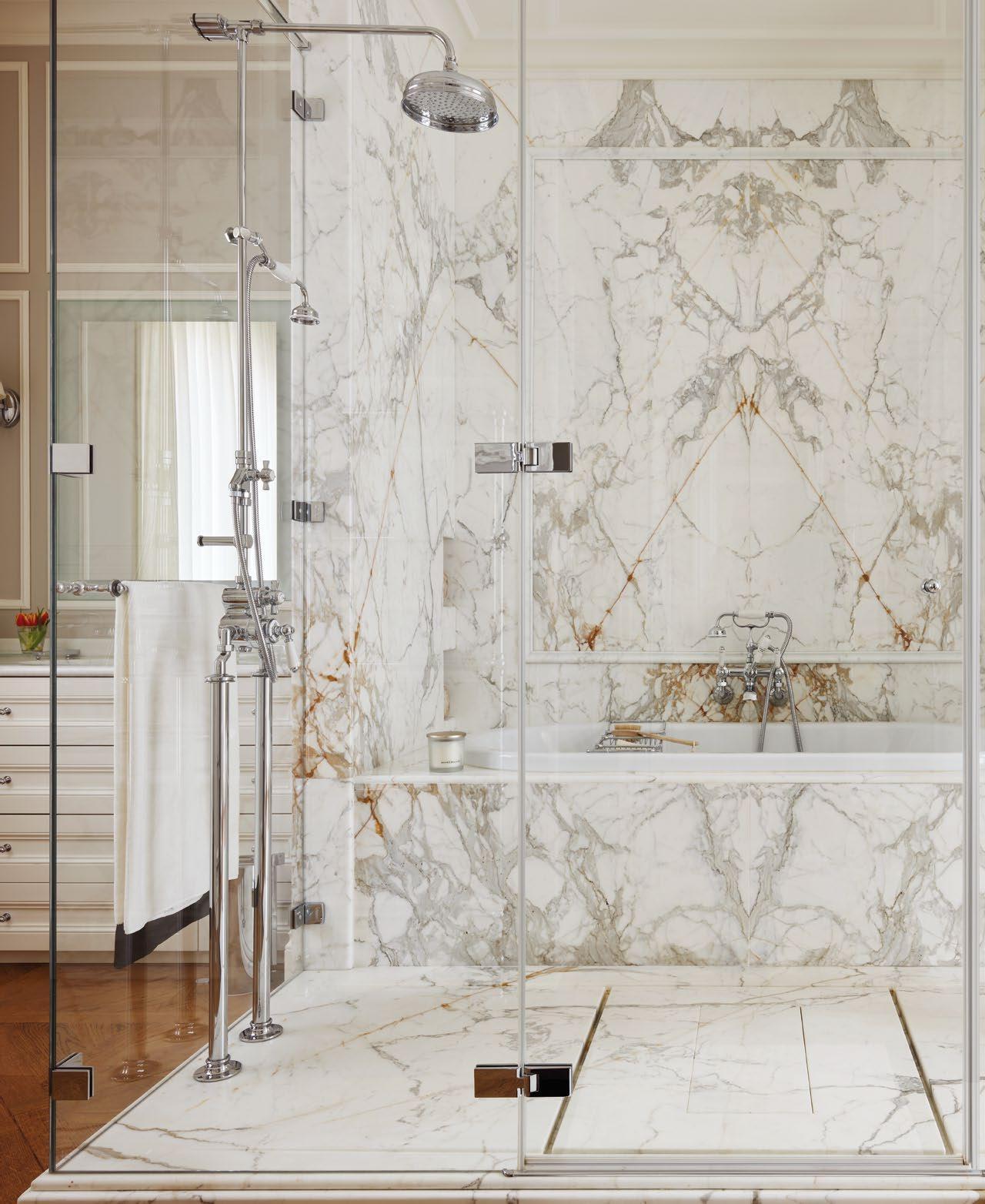 Holiday with moulded plinth in Calacatta Oro marble