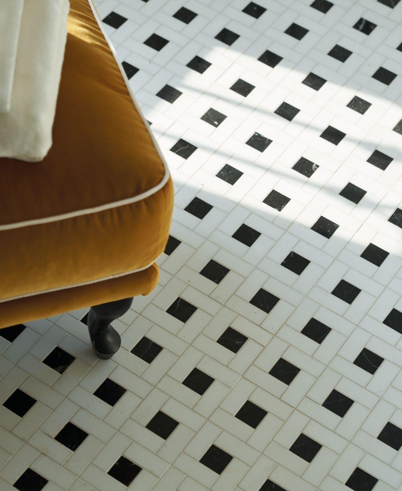 Elite Marble Tiles, White Thassos and Nero Marquinha marble