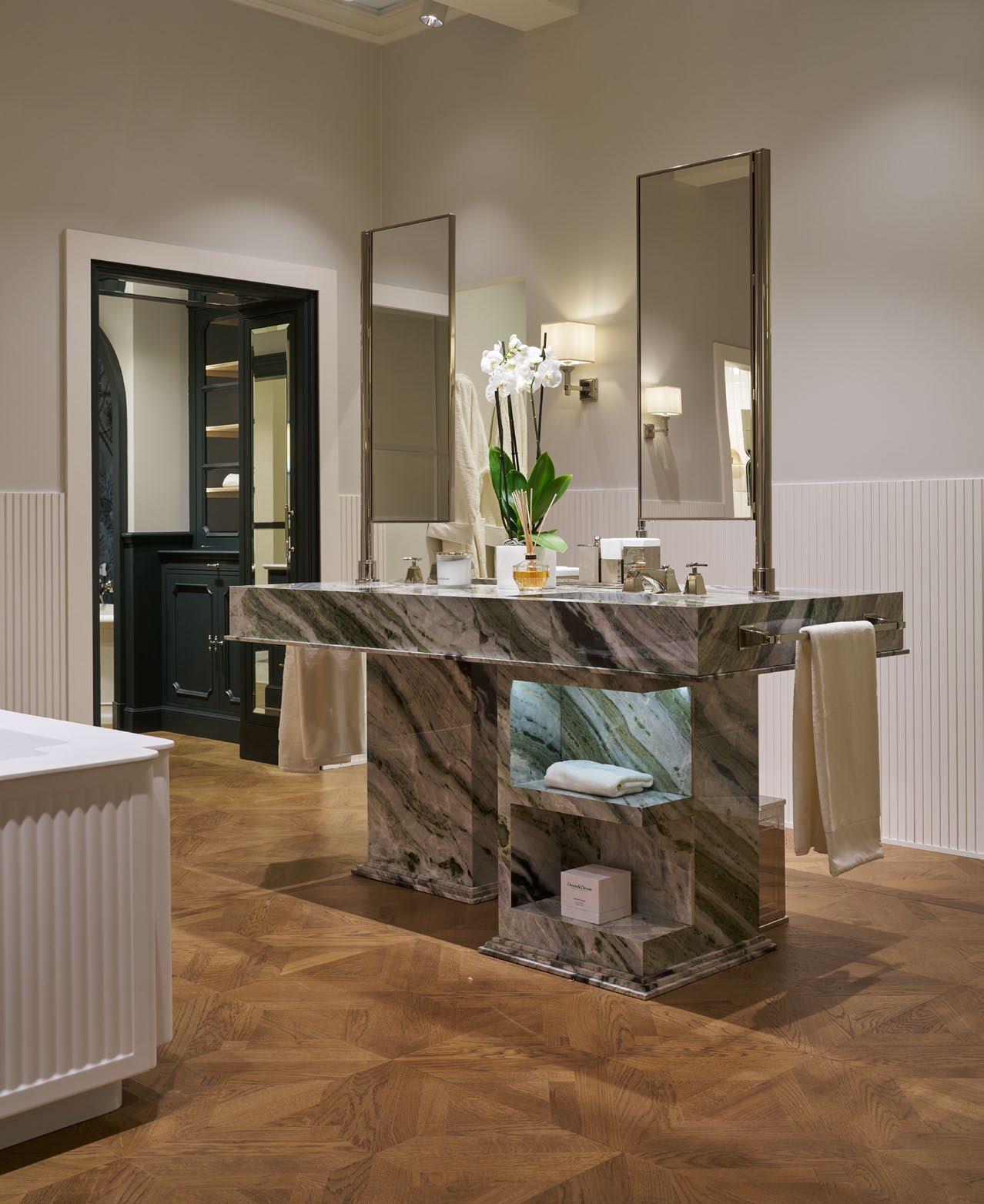 Devon&Devon accompanies the design choices of its clients with exclusive, complete and coordinated interior design solutions and with great attention to every detail of the project. The collections include products for the bathroom (sanitaryware, bathtubs, showers, taps and fittings, mixer taps and shower heads, furniture and consoles) and solutions dedicated to the whole home, such as marble, ceramic and wood flooring and wall coverings; wallpaper and furniture; mirrors, lamps and wall lamps and an entire boutique of home and lifestyle items inspired by the brand’s iconic style and a philosophy of living made up of details that make the difference.