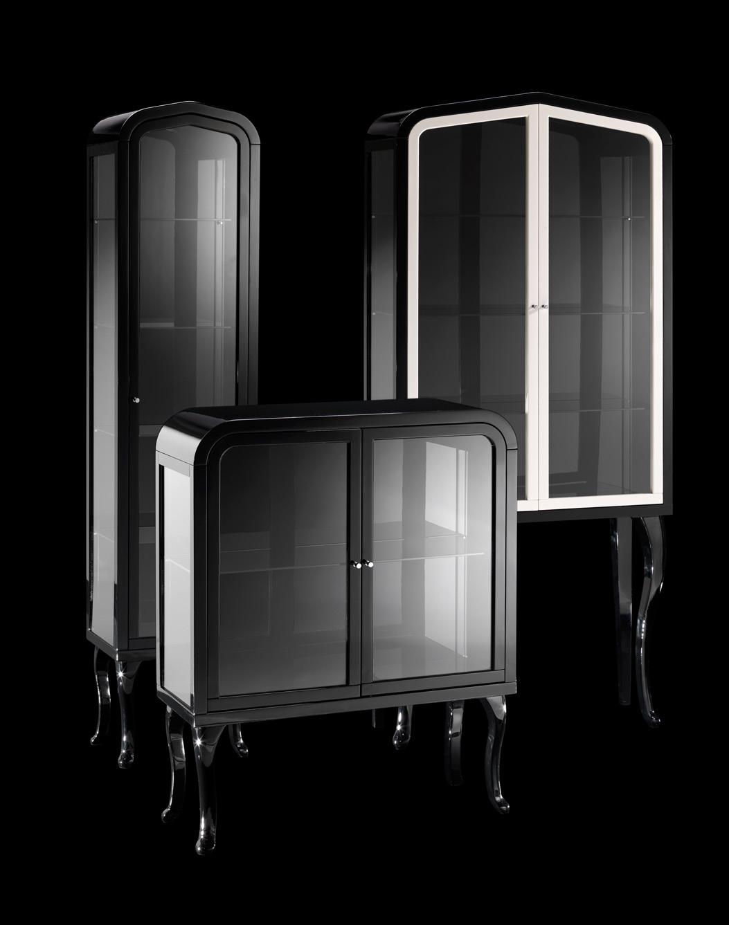 MOBILE VETRINA IN LEGNO LACCATO, DISPONIBILE IN LACCATURA LUCIDA MONOCOLORE O BICOLORE (COME FOTO) NEI COLORI: LACQUERED WOOD GLASS CABINET, AVAILABLE IN SINGLE OR DOUBLE COLOUR LACQUERING (LIKE PHOTO) IN COLOURS: