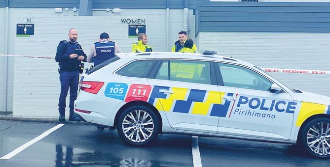 Sad end... Police at the taped-off public toilet block at the Hauraki Corner shops car park, where a woman’s body was found last week