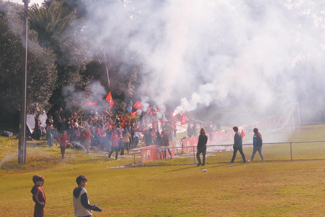 The football game got off to an enthusiastic start at Allen Hill Stadium in Devonport, with a large contingent of Waiheke’s South American supporters swelling the crowd to around 1000 and providing the sides a rousing welcome onto the pitch.