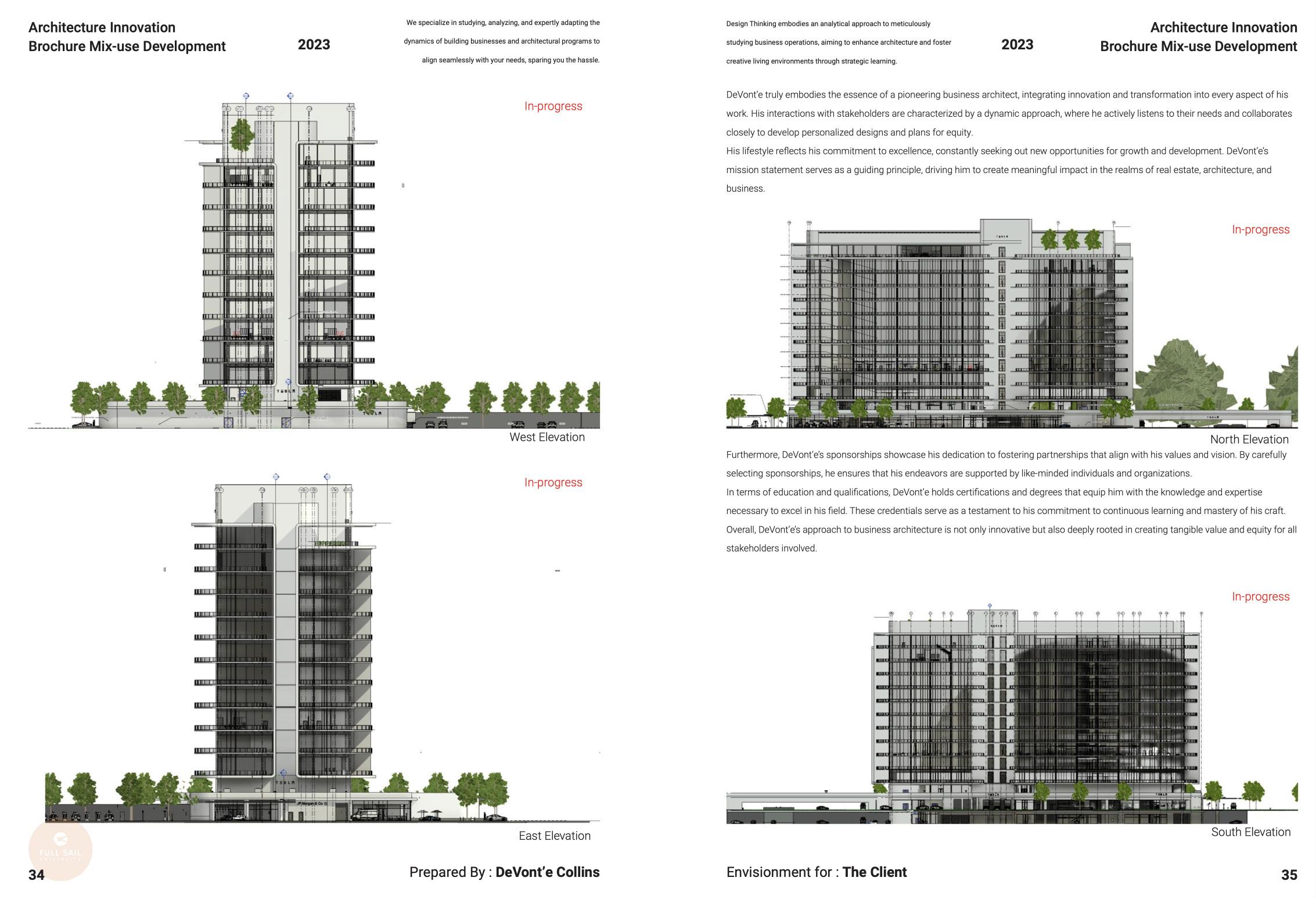 These elevation drawings would provide a comprehensive view of the HALO MixedUse Development, showcasing the building’s massing, material choices, interaction with the urban environment, and integration of luxury features like rooftop amenities and acoustic treatments. Each elevation should offer clarity on both the functional and aesthetic aspects of the design, contributing to the overall success of the project.