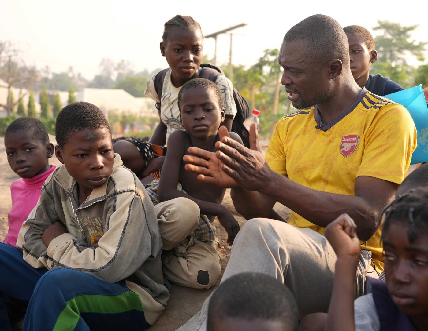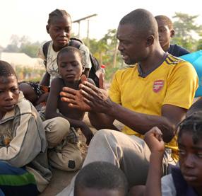 >> Photo 2: PASTOR BARNABAS TEACHES SOME OF THE CHILDREN IN THE CHRISTIAN REFUGEE CAMP