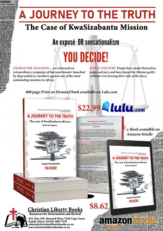 Esther Bornman wrote: This book has so many untruths and distorted stories that it is difficult to know where to start and stop. On page 10, the author writes, “She has fallen under their spell,” which refers to me, who, according to her perspective, has fallen under the “spell” of the KwaSizabantu Mission. This incident relates to a church service. The author’s experience could evoke empathy, but it is not truthful. The truth makes all the difference in concluding an incident.
