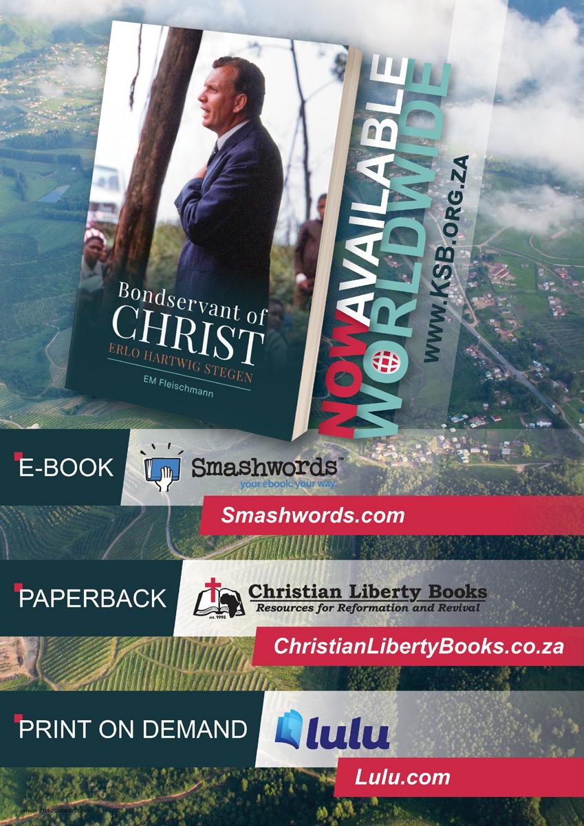 • You can also obtain and read the inspiring story of Erlo Stegen and the Revival among the Zulu: Bondservant of Christ , which is now also available as an eBook and through Print on Demand: https://www.christianlibertybooks.co.za/item/ bondservant_of_christ?fbclid=IwZXh0bgNhZW 0CMTAAAR2qTobEdhuAmjGcQQpuNcWwiSbv Tm11w-NIWxTElktaffQhHBX-WJBPVTk_aem_ uBRmqTaiRkSycR1twECVJg