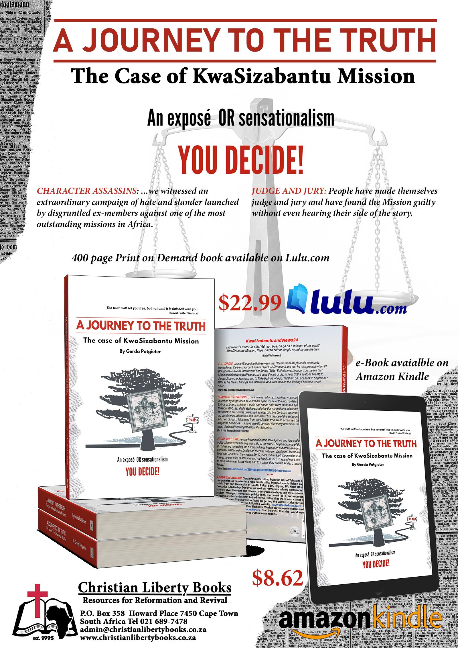 >> Read the book A JOURNEY TO THE TRUTH, THE CASE OF KWASIZABANTU MISSION, BY GERDA POTGIETER, 2023.