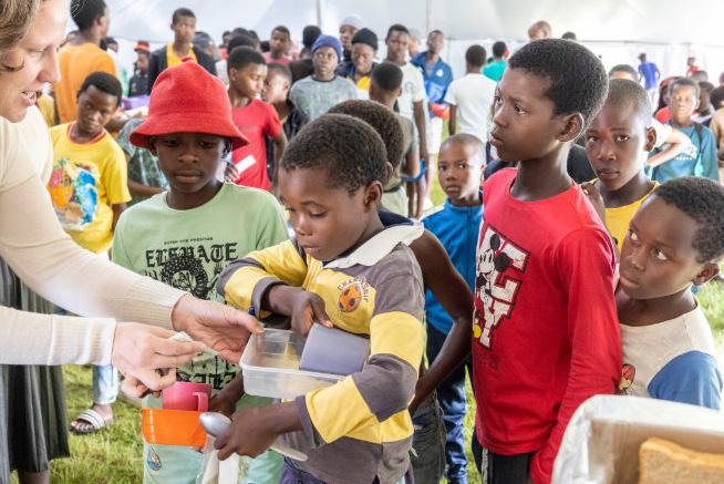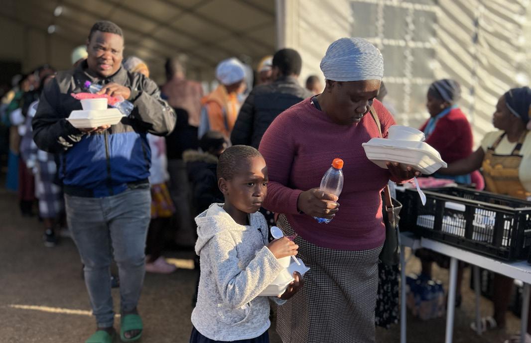From managing the parking arrangements for hundreds of vehicles, they warmly accepted and welcomed honorary and other guests, including representatives from the Royal houses of Swaziland and KwaZulu-Natal, and guided them inside the auditorium where the service occurred. There was outstanding coordination in managing the spillover of the attendees after the 10,000-seater auditorium was capacitated. For this purpose, huge tents were erected by workers and filled with chairs before the time. Afterwards, the tents were used to hand out food parcels for the extra visitors.