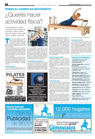 ener una vida saludable es posible. Sólo hace falta proponérselo y arrancar. Ir al gimnasio es un gran paso y, además de ayudarnos a mejorar nuestra calidad de vida gracias al ejercicio físico, nos permite entablar relaciones sociales con nuevos amigos. Aquí te contamos algunas de las actividades físicas que desarrollan los gimnasios de nuestra zona. Desde clases de zumba, reggaetón y jump, hasta boxeo, musculación, artes marciales, fitness grupal, pilates, indoor cycle y crossfit, entre otras. Hay actividades para todos los gustos, edades y necesidades. Tanto en Villa Devoto como Villa del Parque, la mayoría de los gimnasios cuentan con profesores nacionales de Educación Física especializados en cada actividad, así como también con gabinete de nutricionistas y psicólogas deportivas. SEGUIR TU RITMO Como toda nueva actividad, empezar a ir al gimnasio será desafiante para tu cuerpo y por