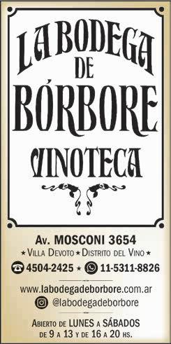 LA BODEGA DE BÓRBORE Av. Mosconi 3650 • Villa Devoto 4504-2425 • L11-5311-8826