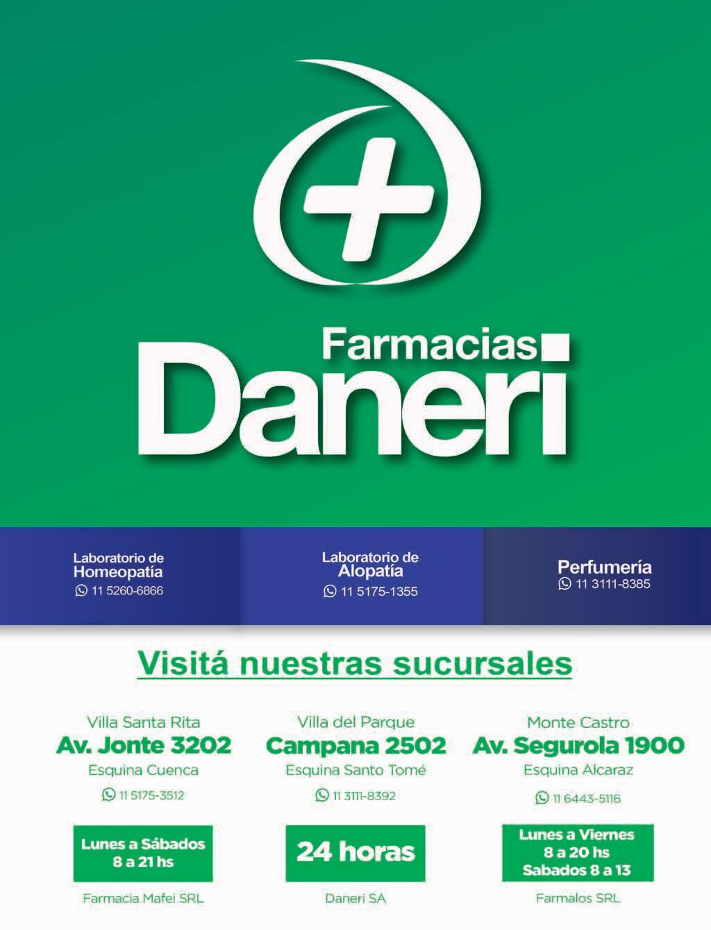 Farmacia Daneri Campana 2052 (esquina Santo Tomé) Villa del Parque w11-3111-8392 $@farmacia.daneri www.daneri.com.ar/
