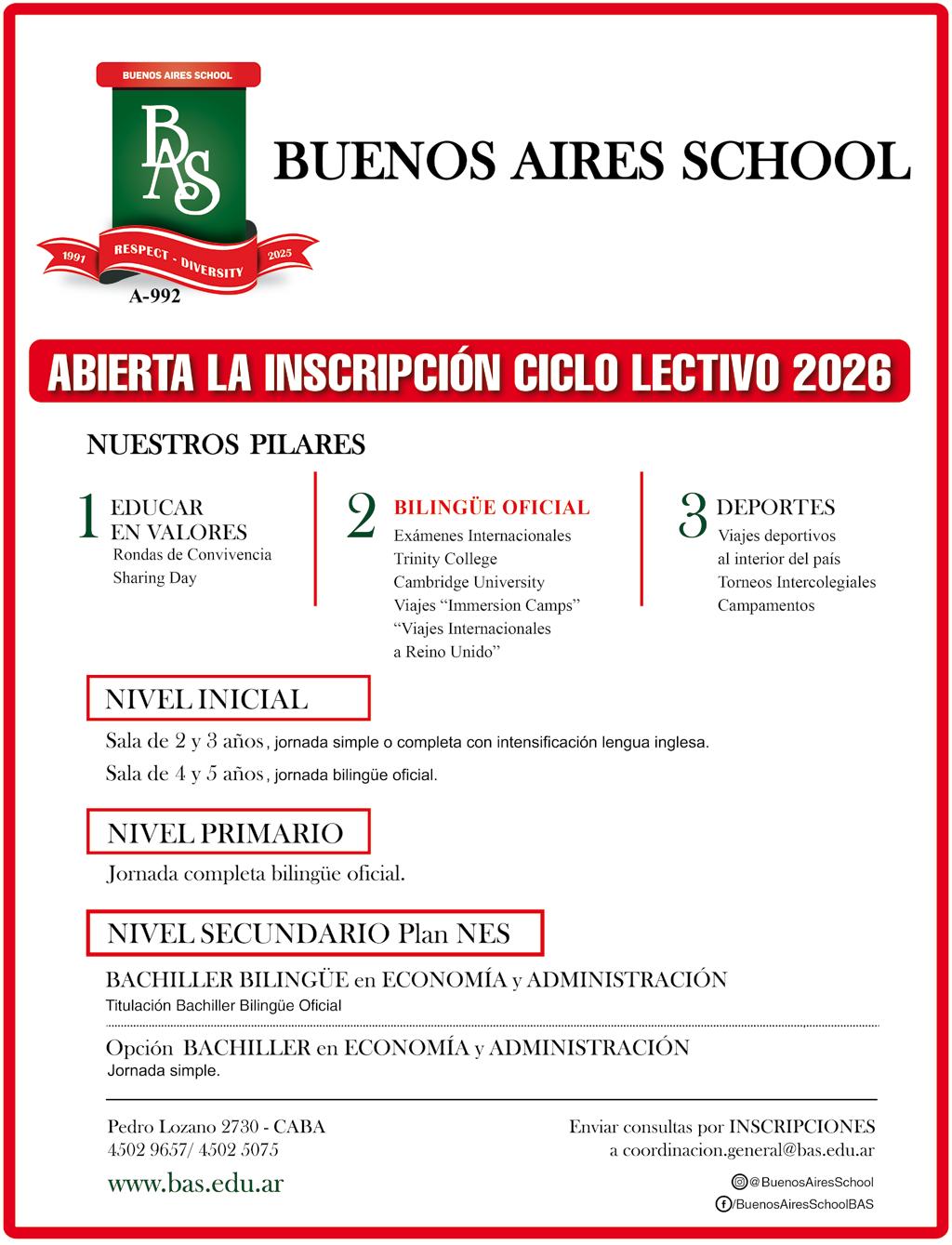 ABIERTA LA INSCRIPCIÓN PARA PRIMER AÑO CICLO 2026, LOS INTERESADOS CONTACTARSE A: nivel.secundario@iea.edu.ar