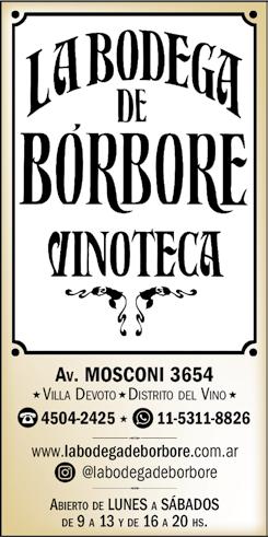 Información: 4504-2425 • 11-5311-8826 www.labodegadeborbore.com.ar $ f labodegadeborbore