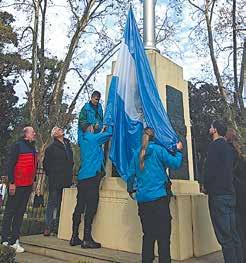 Desde temprano, el mástil central fue testigo del izamiento de la bandera y de las estrofas del Himno Nacional.