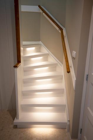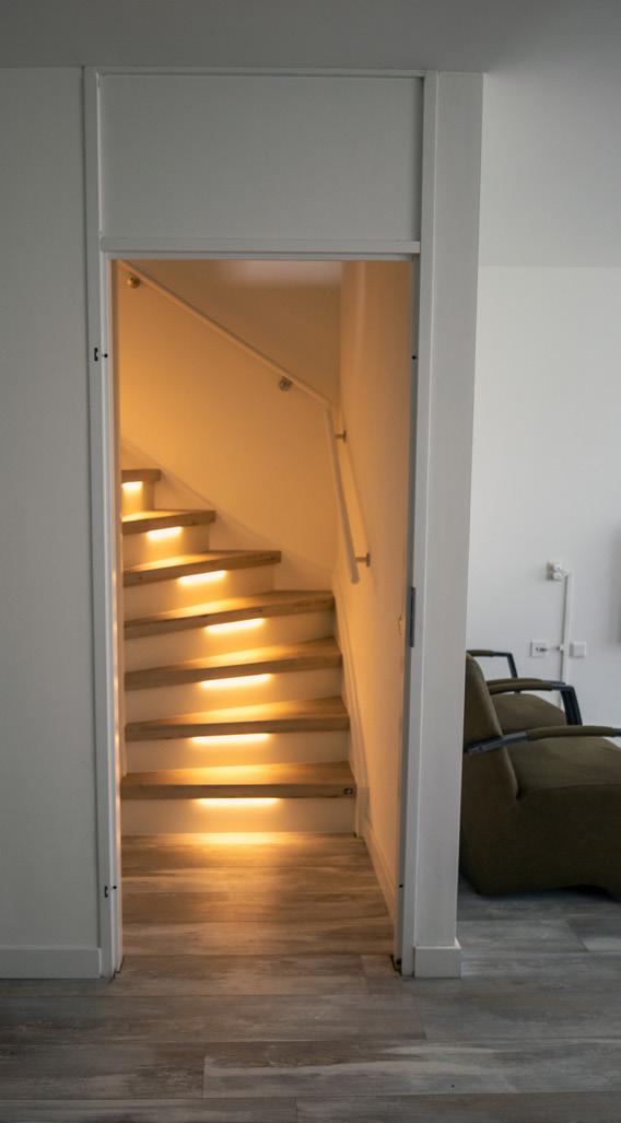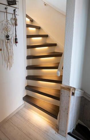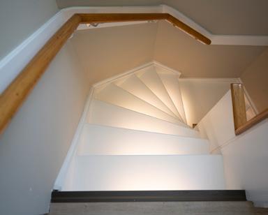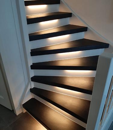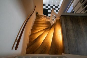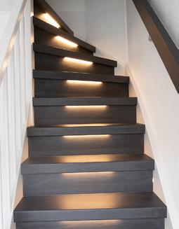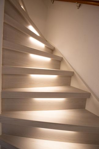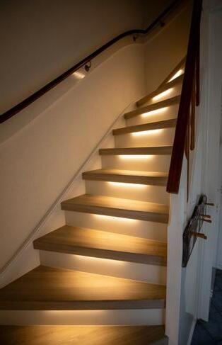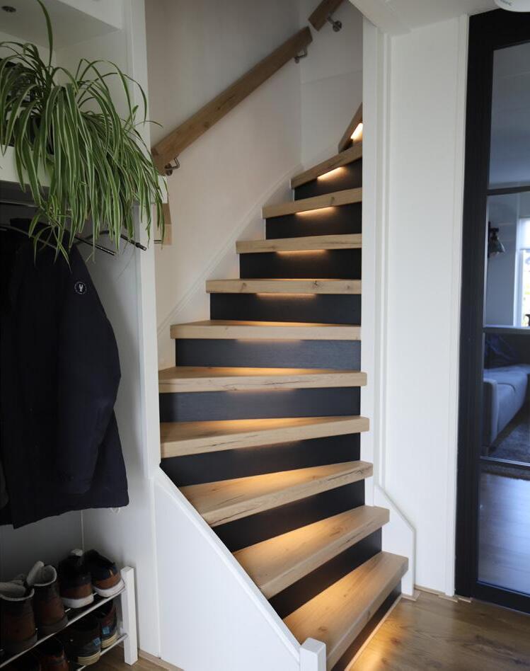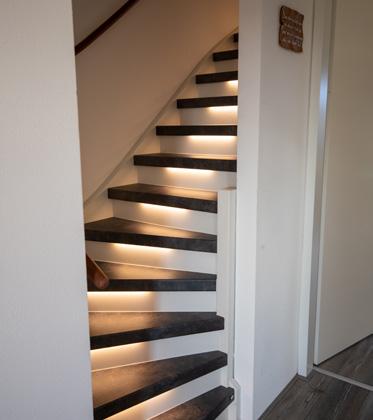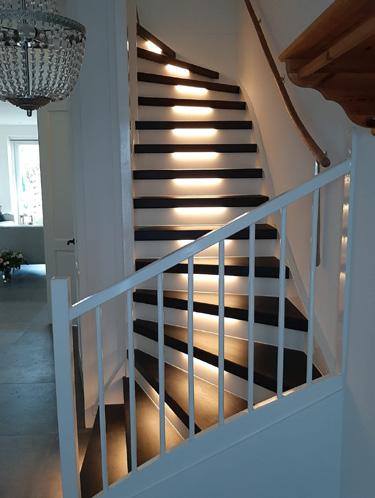 Sfeervolle ledverlichting in de trap integreren maakt je trap of gang ‘s avonds extra sfeervol en ’s nachts veel veiliger.