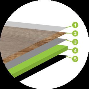 De Next Step traprenovaties worden uitgevoerd met overzettreden die zijn voorzien van een HDF (High Density Fibreboard) (4) kern met een HPL-toplaag. Deze High Pressure Laminate toplaag bestaat uit drie verschillende lagen: de basislaag (3), de decoratielaag (2) en de bovenplaat (1). De basislaag bestaat uit verschillende lagen kraftpapier, geïmpregneerd met fenolhars. Door middel van de middelste laag, de decoratieve laag, wordt het design van de treden bepaald. De bovenste laag bestaat uit melaminehars, dit zorgt ervoor dat HPL krasbestendig is. De HPL-laag is zo sterk dat de hele trede krom kan trekken. Om dit te voorkomen is er aan de onderkant een HPL-drager (5) toegevoegd. Al deze genoemde lagen worden onder extreem hoge druk samengeperst tot een keiharde plaat wat vele voordelen met zich meebrengt.