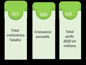 cent du secteur global des services financiers islamiques L'Iran, l’Arabie saoudite et la Malaisie étant les plus grands marchés takāful suivis de l’Indonésie et des Émirats arabes unis.