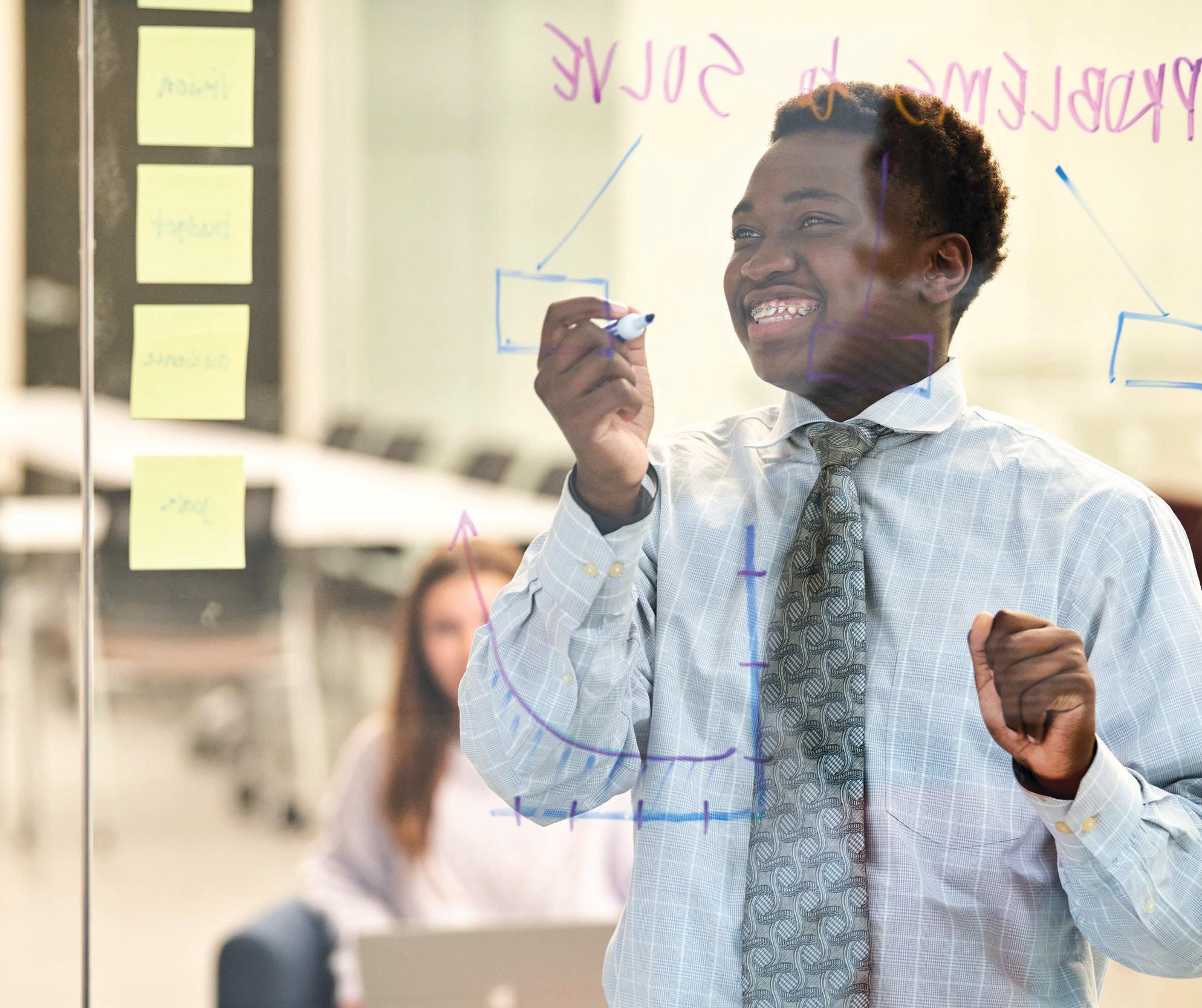 The program’s second stage was focused on group work. “There were seven small groups, of two to three students per group that built out their unique business concepts. We met once a week to workshop their ideas and move their projects forward,” noted Guy. Many of the business plans addressed causes that are important to the stu dents. “I kicked off the business plan ideation process by encouraging the students to think about their values and what’s important to them— one group developed a service that can help the homeless community and another focused on improving health and wellness.”