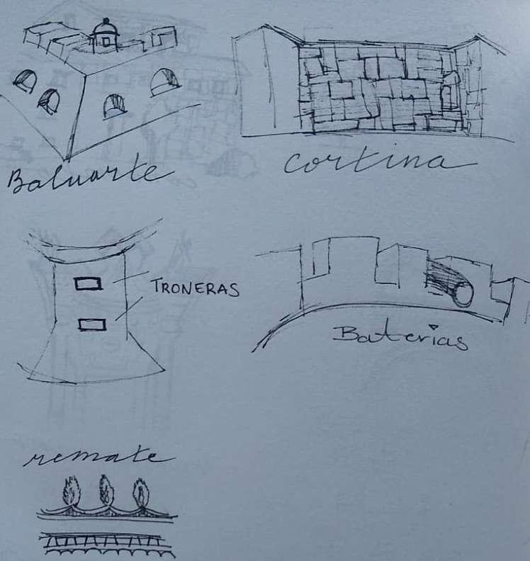 Obra de fortificación que sobresale en el encuentro de dos cortinas o lienzos de muralla y se compone de dos caras que forman ángulo saliente, dos flancos que las unen al muro y una gola de entrada.