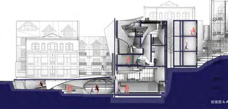 The third dimension considered is streamline and urban open space system. The combination of music-related venues increases the urban public space, activates the negative space, and at the same time creates a connection with the urban transportation system, improving the previously confined street space.