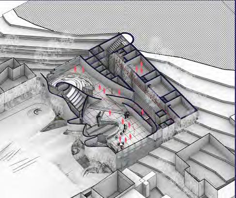 Drawing from this premise, a study of the living habits of Xinjiang residents informs the creation of spatial prototypes aligned with Muslim customs such as bathing, worship, and grazing, as well as their inherent connection to waterfront living spaces. Designs incorporate features like desert planting areas to harmonize with the environment. Structural adaptations of the Kaner Well are also contemplated to ensure functionality while mitigating external sand intrusion. Utilizing an inverted cone structure maximizes living space while preserving natural elements like light and ventilation. Central spaces cater to communal activities, fostering a sense of community among residents and visitors alike.
