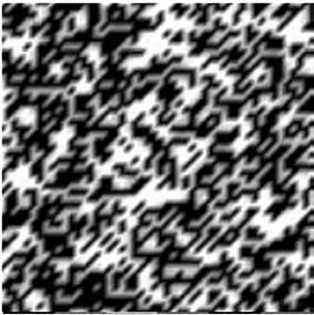 In the second phase, we incorporate decimal numbers to calculate the status of cells, thereby introducing additional states. As depicted in the image, gray blocks emerge between the white and black ones, indicating the presence of half-life cells.
