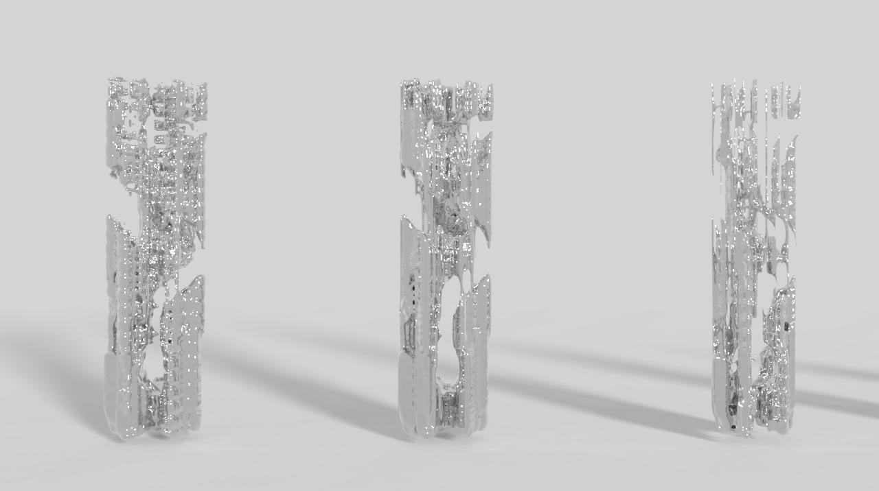 The outcomes of this research exhibit significant divergence based on the rules and code implementations employed. Notably, the culmination of this endeavor manifests in tower-like structures and sculptures, showcasing the creative potential of the simulation.