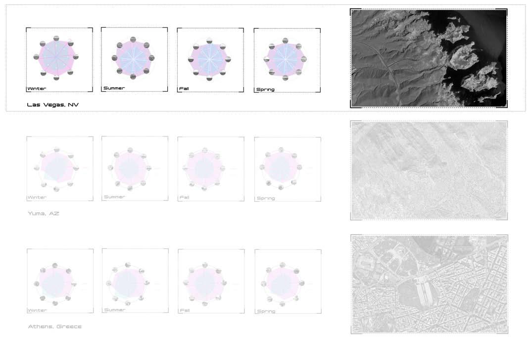 Building upon these insights, we scrutinize factors such as site selection, building orientation, and spatial organization. Through meticulous analysis, we identify a half-land, halfwater site in Las Vegas as the optimal location for our gallery. Furthermore, we leverage the variability of lighting conditions across the four seasons to inform our final site selection.