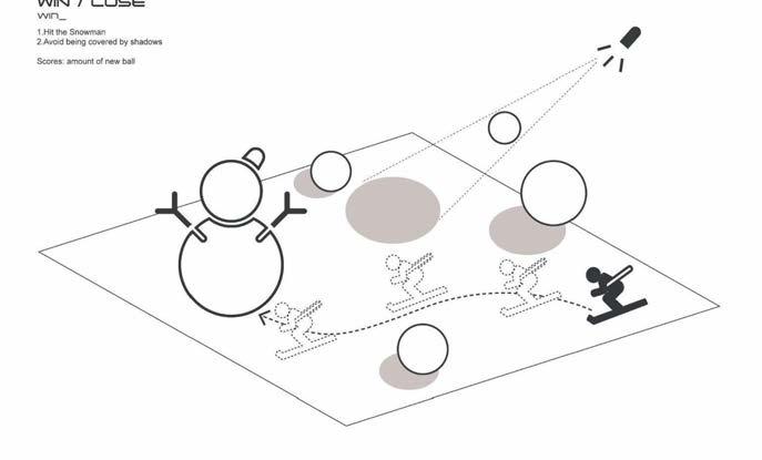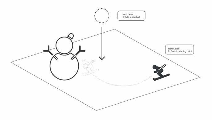 Rules: Hit the snowman. Avoid the shadow areas and use flags to relocate. Snowballs are used as the point count.