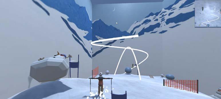We set up a top-view camera to capture the player’s location in real-time, providing a comprehensive view to guide them in hitting the snowman and passing the level. Additionally, NPCs skate around, following predetermined tracks, adding to the challenge and immersion of the game.