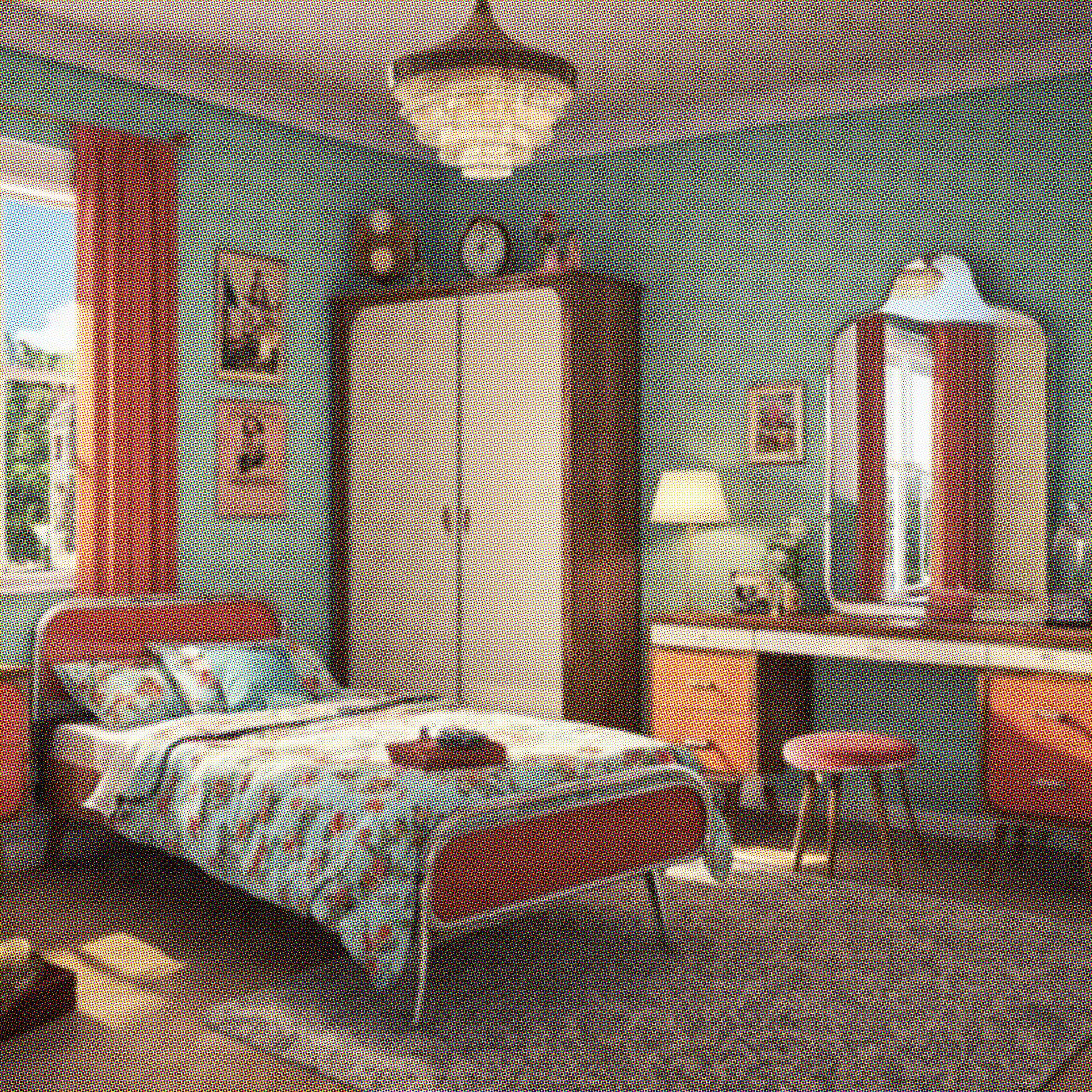 The 1950s significantly departed from wartime scarcity to post-war prosperity, influencing home interiors with bold and luxurious elements. Plush fabrics and gilded wallpapers became prominent, reflecting newfound affluence. Bedrooms epitomized this era with glamorous features like crystal-drop chandeliers and intricately designed headboards, creating a boudoir-style allure. Natural materials such as wooden panels and cane furniture were favored, complemented by quirky touches like rattan sleigh beds and pastel-colored bedding, epitomizing the era's playful spirit.