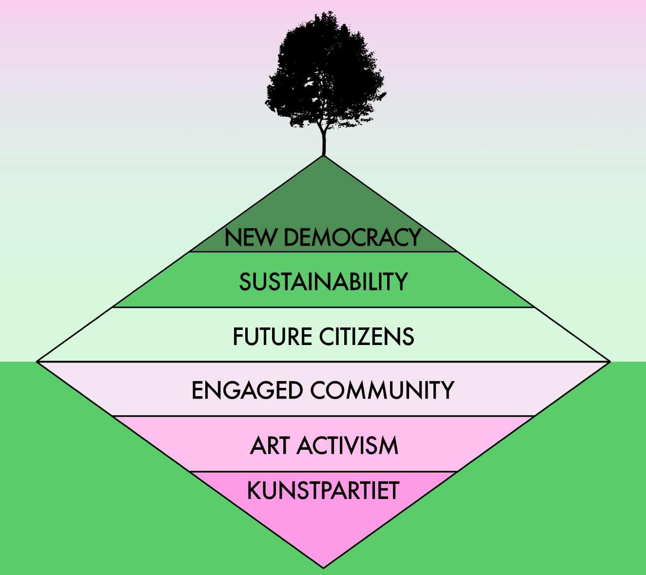 a) at bruge KUNST som en social katalysator for alle borgere og udløse en proces af empati og gensidighed; b) at værdsætte variation og forskellighed; c) at generere venskaber mellem borgere, foreninger og institutioner gennem kunstneriske forestillinger; d) at nærme sig “Det Uventede”.