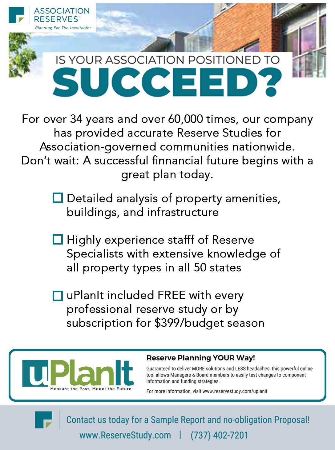 Community associations rely on qualified reserve specialists to assist them in extensive reserve planning to keep their communities running smoothly. Gain the confidence of board members by obtaining the Reserve Specialist® (RS®) designation.