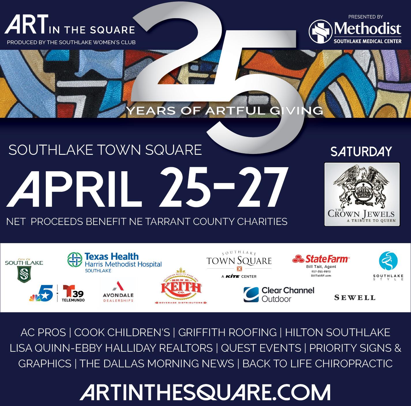 Come celebrate the 25th anniversary of Art in the Square in Southlake Town Square, April 25–27, with proceeds supporting local philanthropies! Join a vibrant weekend of art, music, tasty food, refreshing spirits and children’s activities/crafts. See ad on page 7.