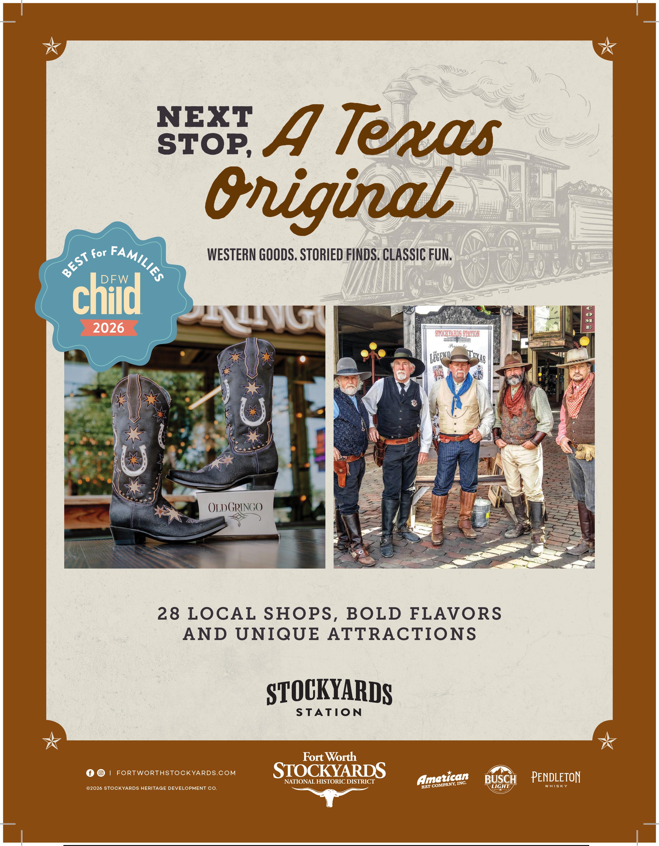 The Fort Worth Stockyards offer unforgettable family fun with championship rodeos, a cattlepen maze, a petting zoo, twice-daily cattle drives, historic tours, pony rides, live shows, Western-themed shops and plenty of cowboy charm for all ages. See ad on back cover.