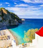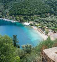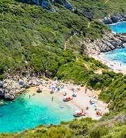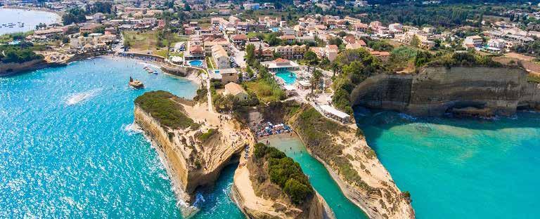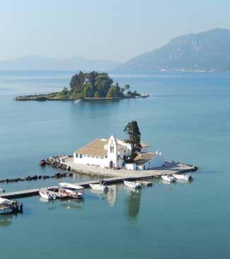 La laguna di Korissa incanta con le sue lunghe strisce di sabbia, mentre il Palazzo dell’Achilleon, costruito per l’imperatrice Sissi nel 1800, conquista con i suoi giardini di palme, rose e fichi d’India. Il clima mite, caldo ma ventilato favorisce una vegetazione rigogliosa ma sempre verde che fa da contrasto alle bellissime spiagge della sua costa.
