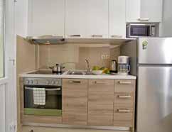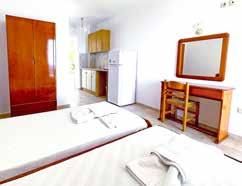 La struttura dispone di 7 appartamenti, disposti su 3 piani e arredati in modo semplice. Studio 2/3 (30 mq): monolocale con 2/3 letti singoli. Tutte le sistemazioni sono dotate di: balcone, angolo cottura attrezzato con piastre elettriche e mini-frigo, wi-fi, TV, aria condizionata (a pag.), bagno privato con doccia e asciugacapelli. Riassetto quotidiano e cambio biancheria letto e bagno/2 volte a settimana.