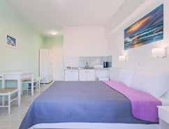 La struttura dispone di 15 studio, ospitati in un edificio bianco a 2 passi dal mare. Mono 2/3 (25 mq): ambiente unico con angolo cottura e 2 letti singoli. Tutte le sistemazioni sono dotate di: piccolo patio o veranda, angolo cottura attrezzato con piastre elettriche e mini-frigo, wi-fi, bagno privato con doccia. I letti aggiunti sono brandine pieghevoli/divani letto. Riassetto quotidiano e cambio biancheria letto e bagno/2 volte a settimana.