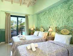 L’hotel dispone di 225 camere, standard, suite e maisonette (con piscina privata). Tutte sono dotate di: letto matrimoniale, possibilità di 3° letto in divano letto, balcone o veranda vista mare o piscina, minibar, TV, wi-fi, aria condizionata, cassetta di sicurezza, servizi privati con vasca o doccia, asciugacapelli e set di cortesia.