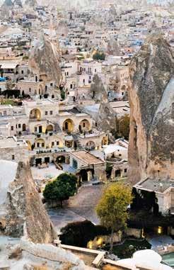 docia, disseminata di colonne rocciose intagliate nel tufo che prendono il nome di “camini delle fate” perché conferiscono alla valle un aspetto fiabesco, della Valle di Devrent, dove il tempo ha eroso la roccia formando dei picchi, dei coni e degli obelischi e di una cooperativa locale dove sarà possibile scoprire tutti i segreti della lavorazione dei famosi tappeti turchi in esposizione con possibilità facoltativa di acquisto e spedizione. Pranzo in ristorante. Visita di Ozkonak (o Saratli), uno dei complessi rifugi sottoterra conosciuti come “città sotterranee”, della Cittadella di Uchisar, situata all’interno di un cono di roccia tufacea e di un laboratorio per la lavorazione di pietre dure, oro e argento. Trasferimento per il rientro in hotel. Cena e pernottamento. Possibilità di partecipare alla serata folkloristica (facoltativa, a pagamento) con danzatrice del ventre.