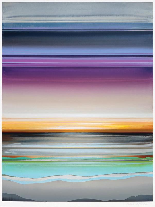 MICAH CRANDALL-BEAR’S abstract landscape paintings examine Earth’s intrinsic resources and our disposition toward their accelerated transformation. His concept is infused with linear layers that cascade from atmospheric to subterranean. Landscape details hint at daily and seasonal shifts in light, evoking a sense of evolution and balance. He presents abstractions that inspire a deep and effusive connection to nature. Crandall-Bear achieves longitudinal depth by exacting precisely renderedlinesandseamlessexpansesofcolor.Thisexplicitlycomposed depth communicates a sense of contingency and locality. Micah’s construction of space is enhanced by his painting method. His ‘wet-onwet’ method is a contemporary application of ‘alla prima,’ a traditional technique used mostly in oil painting, where layers of wet paint are appliedtopreviouslayersofwetpaint.Nomatterhowpreciseorgeneral the area, Micah’s layered brushstrokes are decisive, but also gestural, often spanning the entire surface of the canvas from left to right. This highly active method of painting is sometimes tempered through rapid buffing and blending. The outcome is a smooth, boundless, and energetic surface. As a Sacramento, California native, Crandall-Bear established his artistic roots locally and continues to promote the growth of his community. His work is represented in the United States, Asia, and Europe. He has been featured in ArtSlant, Art Maze Mag, AmericanArtCollectorMagazine,Forbesandmore.
