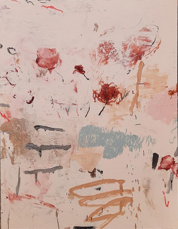 As a migrant living in Yogyakarta, Yusa releases her longing for the coast, recalling simple fragments that pop into her head and rearranging them onto the canvas. Memories are certainly not perfect, there are sides that are blurred when recalled, therefore abstraction becomes the most appropriate language to express that feeling. The emergence of fragments in the form of colors, textures and textures represent the longing for the beach panorama. In her work, Yusa will continue to reflect on nature.