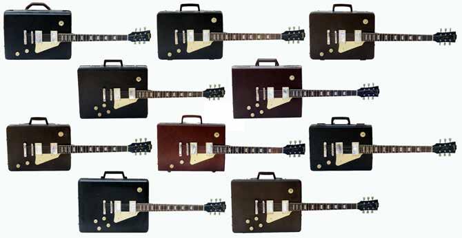 JAKARTAART SONI IRAWAN Work Hard Play Hard, suitcase, electric guitar part, wood, 160 X 315 cm, each 108 X 45 X 17 cm, 2022