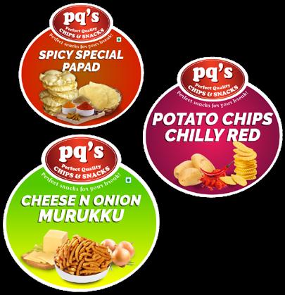Logo and Product Designs Pq’s ( SHIVAGANGA FOODS AND SPICES) Chips & Snack A snacks manufacturing company CHIPS & SNACKS Perfect Quality pq’s pq’s