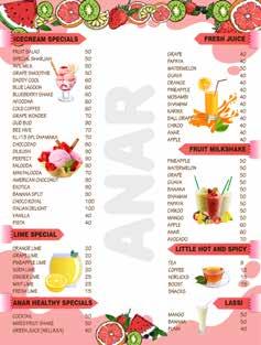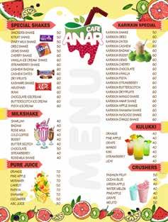 INTRODUCING A NEW RANGE OF INDULGENT DESSERTS A delicious scoop of Honey Comb Ice cream on top of our Belgian Waffle, sprinkled with Red Velvet Cake & Cream Cheese Fros�ng makes it a luxurious dessert to crave for! The white Chocolate Sauce on top makes it a sinfully rich and delicious Waffles! folow us on paulscreamery Red Velvet Waffle ADARSH JUNCTION, OPP. SUB JAIL SEAPORT - AIRPORT ROAD, KAKKANAD, KOCHI, KERALA 682037 JOHN MATHAI PAUL MANAGING DIRECTOR ............................................... (+91) 97383 15094 / 96334 71656 paulscreamery@gmail.com ............................................... GROUND FLOOR, USHASANDHYA TTC JUNCTION, KOWDIAR THIRUVANANTHAPURAM, KERALA - 695003 ................................................. Coffe Chocolate Nirvana creamed minion Mud Cake, 2 scoops vanilla ice cream, cherry, Roasted peanuts, Whipped cream, Chocolate sauce 220.00 2 scoops vanilla ice cream, Banana, Praline, Cherry, Whipped cream, Caramel sauce 200.00 brownie fudge sundae Brownie, Scoop Vanilla Ic Cream, Roasted Peanuts, Chocolate Sauc 190.00 dark chocolate heaven Fudgy Brownie, 0 % Dark Chocolate Ice Cr am & Dark Chocolate Sauce 190.00 berry bomb Strawberry, Wildberry Ice Cream, Banana, Kiwi, strawberry whipped cream Roasted Peanuts, Cashew Nuts, Cherry, Caramel Sauce 220.00 200.00 caramello extravaganza Caramel cake, Caramel Ice Cream, Praline Caramel Sauce 190.00 Birthday Cake Sundae Vanilla Cake with Blue Cotton Candy Ice Cream opped with Nutella, Sprinkles and cherry. The Classic Waffle + Vanilla Ice Cream + Whipped Cream Chocolate Sauce 210.00 froofle Waffle + Mascarpone Ice Cream+ Banana + Kiwi + Cherry + Caramel Sauce 240.00 Banana tella Waffle + Banana + Nutella 180.00 waffle + Maple Syrup 180.00 pista tella Waffle + Pistachio Ice Cream + Nutella 240.00 Waffle Biscottino Waffle + biscotti ice cream + Chocolate Sauce 230.00 210.00 brownie waffle Waffle + Brownie Ice Cream + Caramel Sauce 180.00 waffled minion Waffle + Banana + Whipped Cream + Caramel Sauce Waffle + Caramel Ic Cream + Caramel Sauce 220.00 caramel meltdown NEW YORK CHEESE CAKE SALTED CARAMEL CHEESE CAKE JAPANESE CHEESE CAKE Red Velvet Cake with Cream Cheese Frosting CLASSIC CHOCOLATE CAKE CHOCOLATE FUDGE BROWNIE Salted caramel brownie vanilla CAKE WITH STRAWBERRIES AND cream CHEESE FROSTING LOTUS BISCOFF CHEESE CAKE Banoffee pie DARK CHOCOLATE CHEESE CAKE Pastr ies cappuccino espresso shot espresso 2 shot Cafe latte café mocha caramel latte hazelnut latte americand hot chocolate drink 110.00 60.0 110.00 110.00 120.00 120.00 120.00 90.00 130.00 Sundaes 240.00 DARK CHOCOLATE WAFFLES Waffles + Extra Dark ice cream + Dark chocolate sauce 230.00 BIRTHDAY CAKE WAFFLES Waffle + Blue Cotton Candy Ice cream+ Vanilla cake + Nutella + sprinkles 200.00 200.00 200.00 200.00 200.00 190.00 200.00 200.00 220.00 180.00 200.00 (1 kg Ava lab e) Waffles Waffle + Ferrero Rocher Ice Cream + Nutella + Honey 240.00 cloud 9