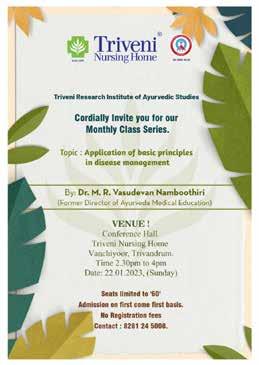 Nursing Home An Ayurveda Hospitall Vanchiyoor, Thiruvananthapuram - 695035 Contact Us: O471- 2470450, 2470709, 2460480 trivenitrivandrum@gmail.com | www.triveninursinghome.com